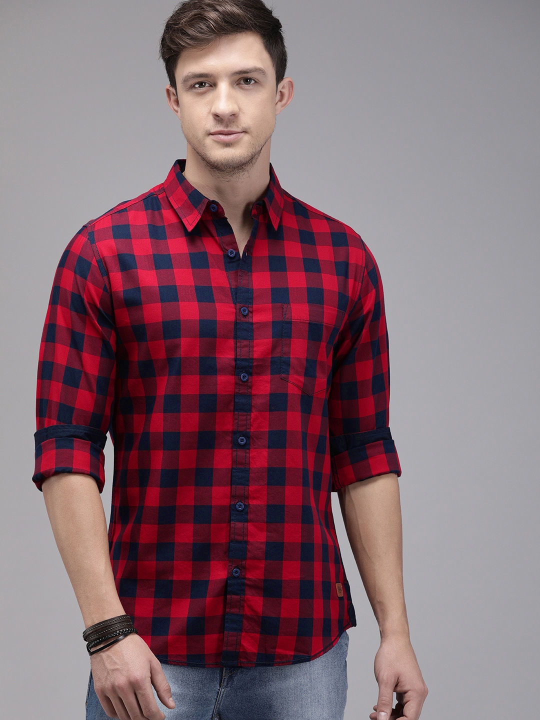 Add a pop of pattern to your everyday wear with our Casual Checked Shirt in Navy & Red. Made from soft, breathable cotton, this shirt offers all-day comfort and effortless style. Designed with a regular fit, it features a classic collar, full sleeves, and a bold check pattern that pairs well with jeans or chinos. A great choice for brunch, hangouts, or casual Fridays.
