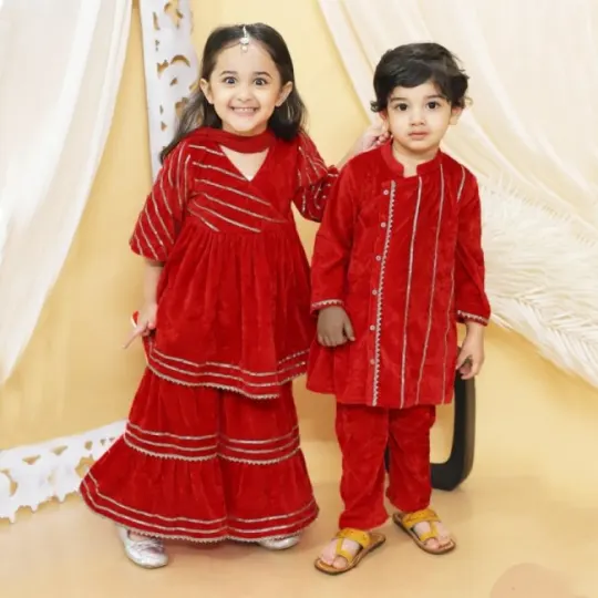 Let your little one shine during every festive celebration, wedding, or cultural event with our delightful range of girls’ traditional outfits. From vibrant lehengas to graceful salwar suits, kurta sets, and ethnic frocks, each piece is thoughtfully designed to combine traditional charm with modern comfort.